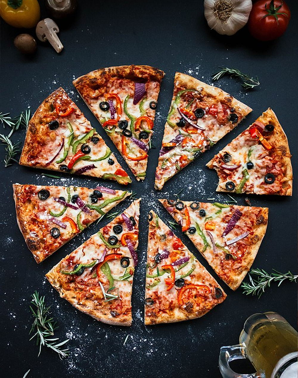Sauce tomate, toleggio, mozzarella fior di latte, gorgonzola, parmesan, chèvre.